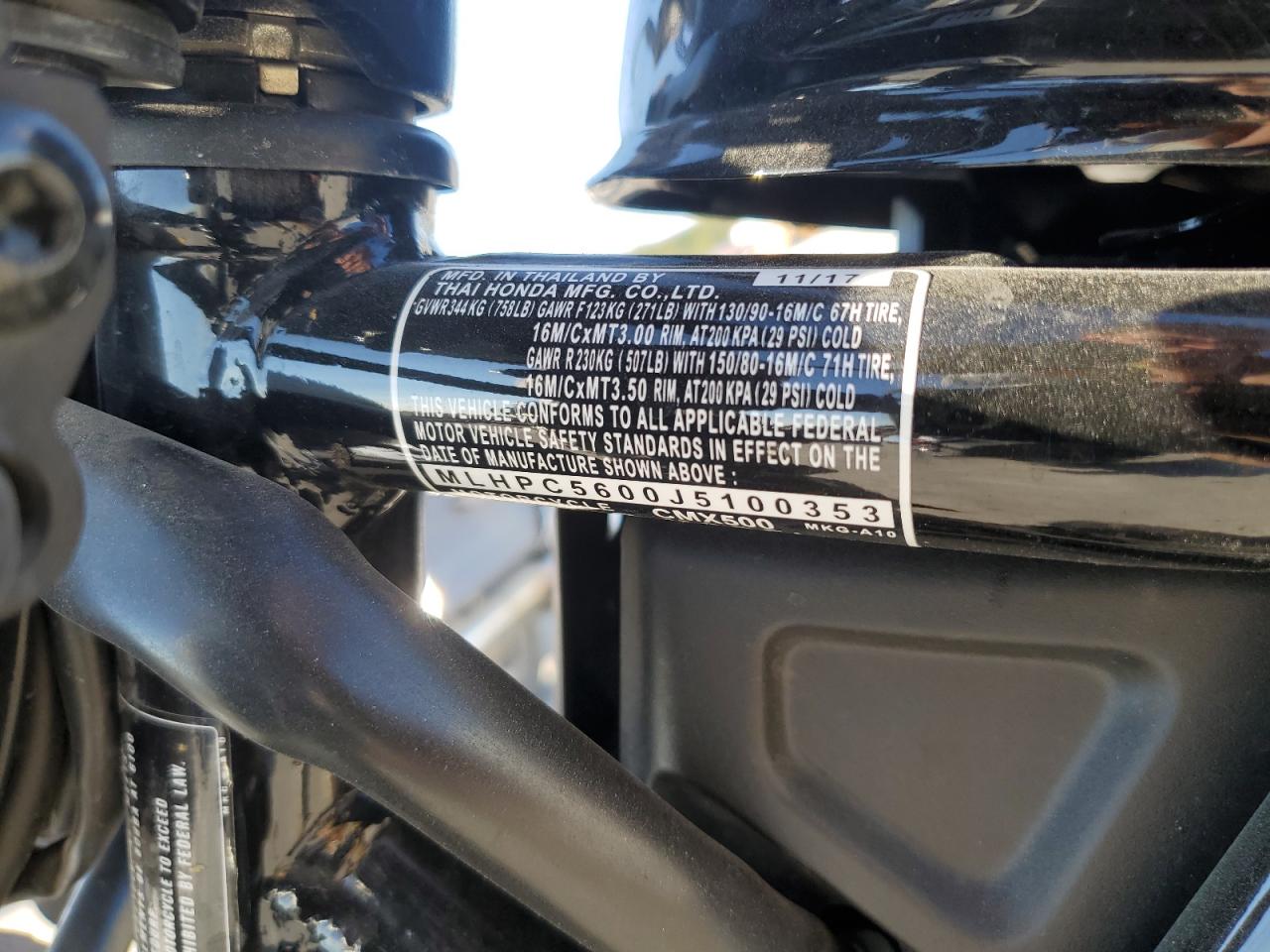 - Veiculo: HONDA CMX500 2018